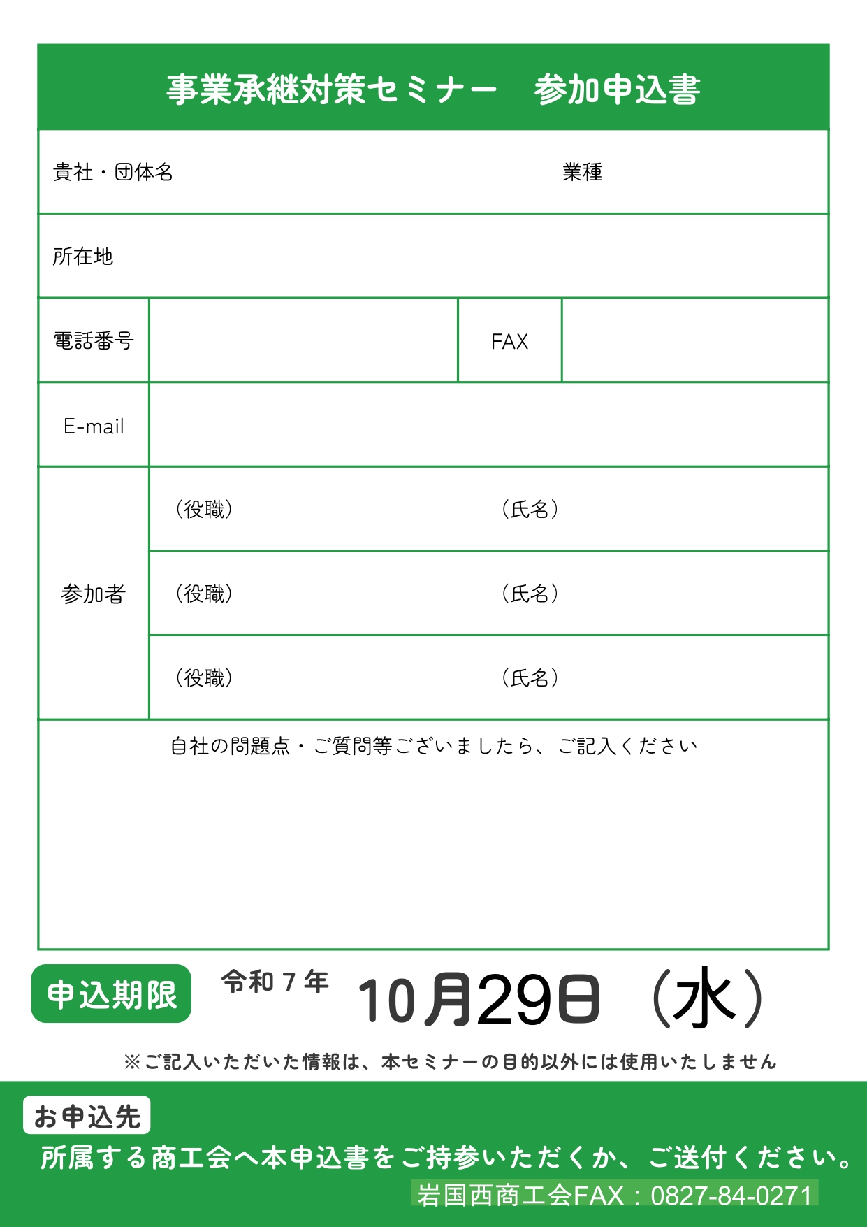また、FAXでのご提出も可能です。FAX送信先は岩国西商工会 FAX:0827-84-0271です。