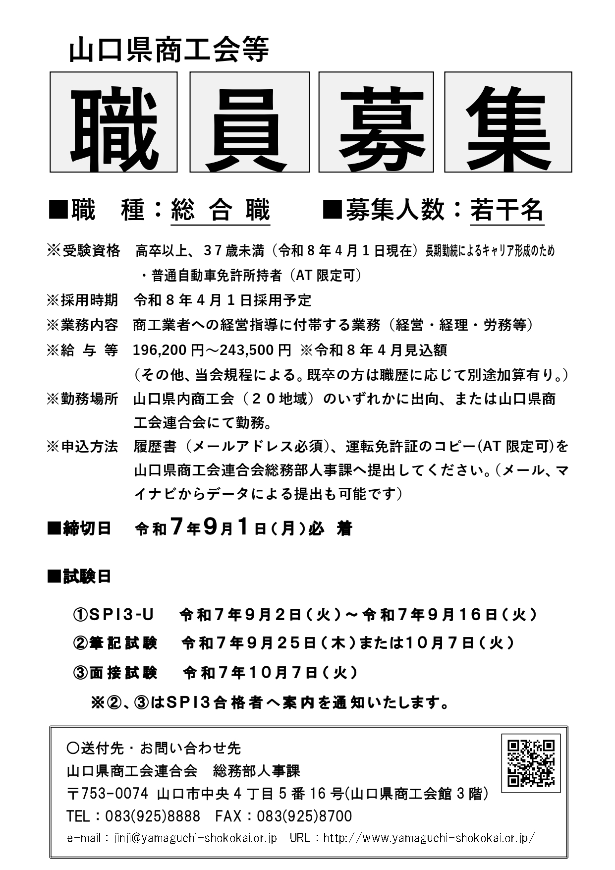2025年5月27日 / 最終更新日 : 2025年5月27日 岩国西商工会 商工会 【職員募集】山口県商工会等新規職員の募集について 山口県商工会連合会にて、令和8年4月1日採用予定の商工会等新規職員を募集しております。 詳細につきましては募集チラシをご覧ください。 新卒採用募集チラシ 202604